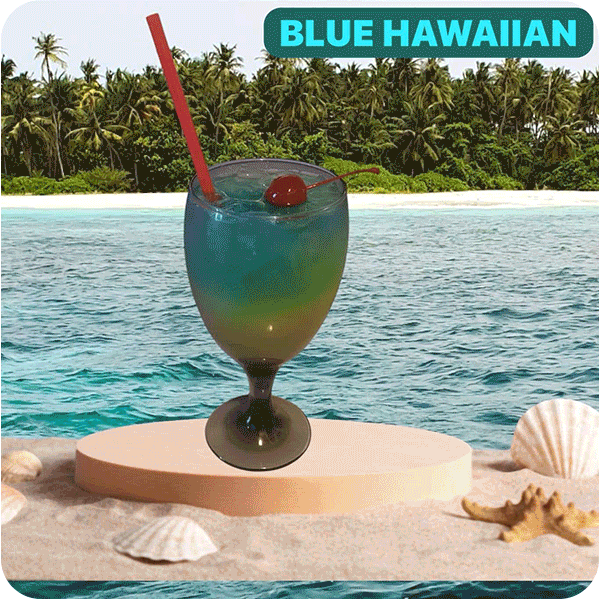 Vodka, melon liqueur, triple sec, orange and pineapple juices with a splash of 7-Up.